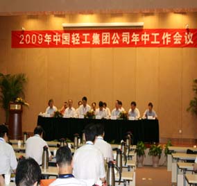 2009年8月20—21日,中国轻工集团公司在京召开2009年年中工作会议。集团公司董事长、临时党委书记陈学忠主持会议。集团公司总经理陈鄂生代表集团公司、集团公司党委作了题为《坚定信心,团结奋进,开创中轻集团重组发展新局面》的主题报告。集团公司规划发展部、科技与信息化部分别介绍了集团公司发展战略规划(草案)和科技发展战略规划(草案)。与会代表根据陈总经理讲话和两个战略规划(草案),结合自身的工作实际进行了讨论。会议还邀请了国家信息中心首席经济师范剑平先生作了宏观经济形势和未来发展趋势的专题讲座。集团公司领导班子成员,各部门负责人,各二级企业党政主要负责人以及三级企业主要负责人参加了会议。